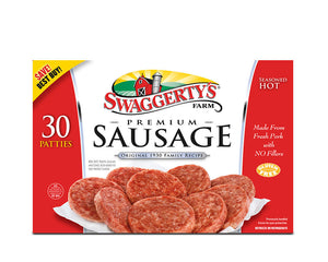 Enjoy 8.44 lbs of our signature Premium Hot Pork Sausage Patties— made with 100% fresh pork, our Original 1930 Family Recipe of spices, no artificial fillers, and ready to cook.
